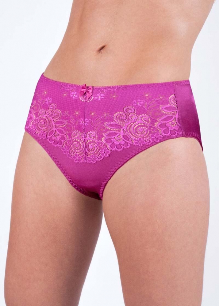 Dominique trosan i maxi modell är en helt fantastisk trosa som ger dig ett extra stöd för din figur. Framsidan är gjord i ett vackert mönstrat tyg med en söt rosett i mitten. Detta är en av våra mest populära trosor.